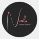 Sticker Rond Manicuriste moderne glam rose néon technicien de b