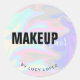 Magnifique maquillage & coiffure ronde design avec la texture colorée fausse holographique et élégante police calligraphie.