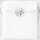Classy Elegant Marbre blanc Wedding Favor Sticker Merci avec titre en caractères de caractères gris modernes sur l'arrière - plan en marbre blanc.