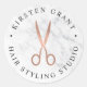 Étiquette votre correspondance ou vos produits avec ces stickers chic qui correspondent à notre suite de marque Marble & Rose Gold pour coiffeurs et salons. Les autocollants présentent une illustration de ciseaux de feuille d'or rose sur un arrière - plan en marbre blanc, avec deux champs de texte courbant autour de l'extérieur, en lettres gris charbon.