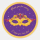 Célébrez votre événement de carnaval de vacances avec un décor de style mascarade. Ce Sticker Mardi Gras Masquerade Thème Classic Round décoré avec masque de carnaval théâtral apportera de l'humeur à votre fête. Masque jaune simple et élégant aux plumes rouges et violettes fait partie du décor festif de mascarade de vos vacances à la mode carnavalesque. Dites merci d'être venu à vos chers invités. Vous pouvez modifier ou ajouter votre texte sous le masque sur le Sticker Mardi Gras Masquerade Thème Classic Round et rendre vos attributs de fête encore plus personnalisés. Bienvenue dans ma collection de carnaval pour plus de décoration de vacances dans le style de mascarade.
