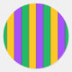 Sticker Rond Mardi Gras Stripes Motif violet vert jaune