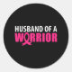Sticker Rond Mari d'un guerrier rose ruban cancer du sein