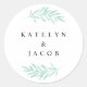 Beau autocollant de mariage personnalisé parfait pour sceller votre faire-part de mariage avec vos noms avec un feuillage vert moderne, tendance et minimaliste. Une partie de notre collection de Mariages d'aquarelle de Mint.