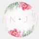 Sticker Rond Mariage aquarelle florale verdure rose blush