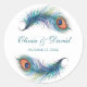 Sticker Rond Mariage au style de la plume de paon sarcelle