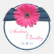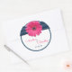 Sticker Rond Mariage bleu marine rose Gerbera Daisy