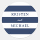 Autocollant mariage rayé bleu et blanc marine. Idéal pour un mariage de la Marine (militaire) ou d'une maison de lac. Personnalisez-le avec vos détails mariages.
