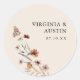 Cet autocollant rond classique d'enveloppe de mariage élégant et élégant présente de magnifiques fleurs sauvages d'aquarelle peints à la main, disposés comme un joli bouquet parfait pour le printemps, l'été ou les mariages de automne. Recherchez les éléments correspondants dans la collection de Mariages de Fleur sauvage Boho.