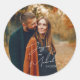 Cet élégant Sticker Roound présente une image complète du couple avec leurs noms dans une belle typographie de script élégante. Pour la personnaliser, cliquez simplement sur "Personnaliser ce design", et Zazzle s'occupera du reste. Cette belle invitation fait partie de la Coral Watercolor Boho Mariage Collection.