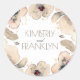 Aquarelle plumes florales boho chic phoques mariages et/ou mariages merci autocollants - schéma de couleurs gris ivoire et blush