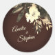 Aquarelle éléments floraux traités avec sépia vieilli toning, mis sur une toile terreuse marron, fini avec les noms de mariée et mariée dans la calligraphie élégante en ivoire.