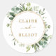 Cet autocollant mariage présente une aquarelle peinte de la végétation d'eucalyptus, des feuilles verts et un cadre circulaire doré. Pour une personnalisation plus avancée de cette conception, cliquez sur le lien "Customiser plus loin". Des articles correspondants sont également disponibles.