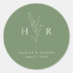 Monogramme vert simple minimal Mariage botanique classique rond Sticker comporte vos initiales autour d'une ligne dessinant botanique, ainsi qu'une disposition de type classique moderne.