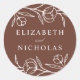 Élégants autocollants de mariage fleuris avec des fleurs blanches esquissées et des feuilles avec un arrière - plan marron. Personnalisez les autocollants de mariage floral avec vos noms. Les autocollants à fleurs sont parfaits pour sceller les enveloppes mariages, les faveurs de mariage, et plus encore! Conçu pour coordonner avec notre collection de mariages floraux esquissés.
