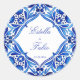 Sticker Rond Mariage carreau bleu azulejo Talavera vintage