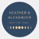 Ajoutez une touche d'élégance cosmique à votre événement avec notre Sticker rond Celestial Mariage Classic. Immergez-vous dans la simplicité enchanteresse de notre design, reflétant la magie fascinante des corps célestes. Notre design à la fois tendance et intemporel présente une série de phases de lune artistiquement crées en or sur un décor bleu marine saisissant. Cette touche d'or ajoute une touche de chaleur et de charme scintillant à la base bleue cool de minuit, renforçant encore l'allure accueillante de la pièce. Le design maintient une approche minimaliste, ce qui permet aux éléments célestes de briller vraiment. Vous pouvez facilement personnaliser selon vos besoins, en vous assurant que chaque pièce reflète votre style unique.