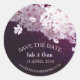 Belles fleurs de cerisiers élégantes + arrière - plan violet rustique conçu sur mesure Mariage Enregistrer les Stickers Date. Facile de customiser les autocollants à fleurs avec votre propre libellé pour un MARIAGE CHERRY BLOSSOM THEMED | PINK & PLUM COULEUR PALETTE MARIAGE ou DÉCONTRACTÉ PRINTEMPS MARIAGE EXTÉRIEUR. (Vous pouvez trouver les essentiels et les faveurs mariages correspondants dans ce magasin, le paradis nuptial. Contactez ujean4791@gmail.com pour un travail personnalisé et/ou la coordination de la papeterie mariage.))