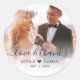 Sticker Rond Mariage chic violet script coeur photo Merci