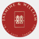 Un design moderne à double bonheur dans un simple cadre minimaliste de rectangle rouge sur un arrière - plan faux feuille d'or. Symbole propice utilisé dans tous les mariages chinois, orientaux et asiatiques. Mariage "merci" parti faveur autocollant ou enveloppe sceau. L'arrière - plan de base peut être changé en n'importe quelle couleur de votre choix. Tout le texte est modifiable. Illustration de fat*fa*tin. Facile à personnaliser avec votre propre message texte, nom, photo ou image. D'autres styles de police, filtres photo et fonctions d'édition sont disponibles sur la page "modifier la conception". ・ ・ ・ ・ ・ ・ ・ ・ ・ www.zazzle.com/fatfatin_blue_knot