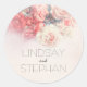 Sticker Rond Mariage d'aquarelle de Roses blanches et roses ros