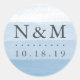 Scellez vos enveloppes d'invitation, vos faveurs et plus encore avec nos stickers monogrammed chic. Le design rond présente vos initiales et votre date mariage dans un élégant lettrage gris fusain avec un arrière - plan aquarellé bleu ciel aquarelle dégradé pour un effet sombre de teinture de trempage. Coordonnées avec notre collection de mariages Dip Dye dans Sky