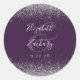 Cet élégant autocollant mariage moderne présente une parties scintillant en faux argent sur le haut et le bas. Customisez facilement le texte gris argenté sur un arrière - plan violet foncé, avec les noms du couple en calligraphie manuscrite sur une grande esperluette.