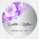 Sticker Rond Mariage de bouquet de rose violette en argent