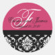 Sticker Rond Mariage de commande personnalisé Monogram Fushia #