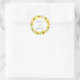 Scellez vos enveloppes d'invitation ou vos faveurs avec ces autocollants de mariage champêtre chic et fleuri avec vos noms encadrés par une couronne d'aquarelle de tournesols jaunes rustiques, feuillage vert et bourgeons bleus et violets. Coordonnées avec notre collection mariage Flowerfields.