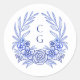 Sticker Rond Mariage de couronne de monogramme floral bleu