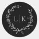 Sticker Rond Mariage de couronne de monogramme noir et blanc