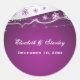 Mariage d'hiver violet, gris argenté, blanc flocon de neige Enregistrer l'autocollant Date, avec une bande ondulée en gris argenté avec étoiles et violet élégante flocon de neige sur l'arrière - plan violet aubergine dégradé brillant. Moderne et contemporain mais adapté pour un mariage traditionnel. Ce design élégant, élégant et élégant peut être utilisé pour d'autres occasions spéciales comme des fiançailles ou des anniversaires. Un choix parfait pour les mariages d'hiver, de décembre ou de Noël.