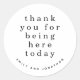 Simple Noir Blanc Noms Merci Mariage. Style contemporain avec Merci pour être ici plus grand en minuscules élégantes et vos noms courbés sous. Personnalisez facilement le texte à vos propres détails.