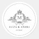 Élégant Monogramme Feuille Vintage. Sticker rond classique mariage. Initiales monogrammes encadrées par d'élégantes crêtes vintages illustrées à la main en noir et blanc, style simple mais sophistiqué. Un choix parfait pour les mariages modernes, classiques et simples. Veuillez vérifier les pièces correspondantes de la collection.