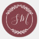 Sticker Rond Mariage de monogramme de feuille blanche bordeaux