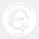 Sticker Rond Mariage de monogramme moderne Dusty Blue Leafy Cre