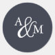 Sticker Rond Mariage de monogramme noir et blanc