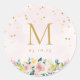 Autocollants/étiquettes monogrammés personnalisés avec monogramme or de style classique avec élégant bouquet rose aquarelle rose.