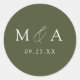 Sticker Rond Mariage de Monogramme vert olive élégant moderne