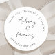 Classic Black White Personnalisé Noms Mariage Classic Round Sticker.