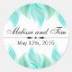 Ce design clair et aéré présente des plumes d'aquarelle dans les tons cool de bleu, d'aqua et de vert et fait partie de la Collection Mariage de plumes d'aquarelle. Customisez cet autocollant avec vos détails en cliquant sur le bouton "Customiser" et en entrant vos informations dans le modèle de conception. Vous pouvez modifier les polices, les tailles de police et les couleurs de police et déplacer le texte en fonction de vos besoins.