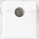 Sticker Rond Rustique Dar Wood Winter Tree Mariage Classic Script blanc. Nom de la mariée et du marié et date du mariage en écriture blanche sur arrière - plan en bois rustique avec un arbre d'hiver avec des flocons de neige blancs. Cliquez sur le lien de collection ci-dessous pour obtenir plus d'éléments correspondants.