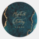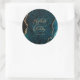 Sticker Rond Mariage de script d'agrégation d'or bleu turquoise