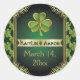 Sticker Rond Mariage de trèfle en or, vert irlandais Enregistre