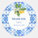 Carrelage bleu méditerranéen et citrons Sticker rond mariage classique.
