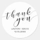 Ces autocollants personnalisés ajouteront une touche d'élégance à vos invitations et faveurs de mariage. Ce modèle design moderne dispose d'un arrière - plan blanc avec les mots "Merci" dans la typographie script moderne et vos noms et date à personnaliser. Consultez notre boutique I Love Weddingz pour en savoir plus sur cette collection. Conçu par l'artiste Susan Coffey.