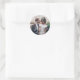 Ajoutez une touche personnalisée élégante aux cartes de remerciement mariages et aux faveurs de la réception avec autocollants photo ronds / scellés d'enveloppe personnalisés. L'image et toute la formulation de ce modèle sont simples à personnaliser. "Merci" peut être changé en amour & merci, bienvenue, initiales du couple, autre texte, ou il peut être supprimé complètement. (CONSEIL EN MATIÈRE DE PLACEMENT D'IMAGE : Une façon simple de positionner une photo exactement comment vous voulez est de la rogner avant de la télécharger sur le site Zazzle.) Le design moderne de superposition blanche comprend une calligraphie manuscrite tendance, des noms et une date de typographie classique minimes et une photo de votre choix. Ces étiquettes sont une façon élégante d'express la gratitude aux amis et à la famille pour avoir partagé votre célébration spéciale de la journée.