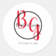 Ce design présente un arrangement élégant mais simple des initiales personnalisées de la mariée et du marié. Les noms des couples sont encerclés d'une bague noire et placés sur les initiales du prénom de la mariée et du marié qui sont affichées en typographie rouge. Ce design rouge, noir et blanc est simple mais élégant dans tous les sens. Le mélange des couleurs crée un style chic, tendance et sophistiqué. Design élégant autocollant de mariage avec des éléments modernes. La configuration simple de la typographie lui donne un style distinct. Des invitations de mariage et d'autres articles de papeterie sont également disponibles.