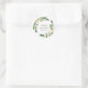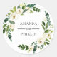 Élégant Sticker Mariage Rond Roses Blanches Vertes.